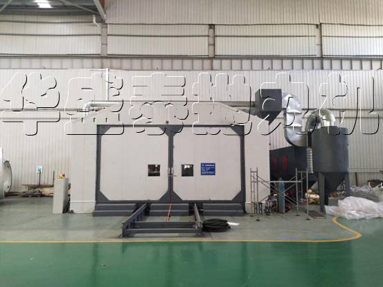 青岛华盛泰专业生产台车式喷砂房,本机为平车往复式专用喷砂房,它由喷砂室体、刮板输送机、提升机、分离器、输送台车、照明系统、除尘系统、喷砂服、电控系统等部分组成。