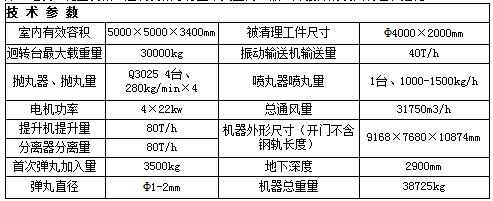 如下图该设备以抛丸清理为主,并有能升降的喷丸机构,对工件内腔补充清理,适用于水泵、汽轮机、机床、电机、化工机械、建筑机械等行业中大型铸、锻、焊接件的表面清理和强化。