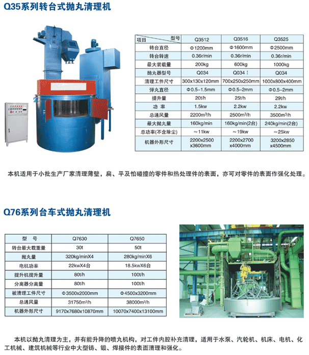 Q35系列和Q76系列的转台式抛丸清理机如下: