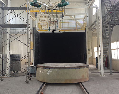 是将承载大型工件的台车开到抛丸室内后,关闭室体大门对工件进行抛丸清理,抛丸的同时台车可以做回转运动或台车做回转运动的同时也可做自动往复移动。改产品适用于各种大型铸件,锻件结构件的抛丸清理。